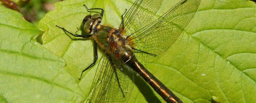 Nature TodayZo zeldzaam als de gelijknamige edelsteen is hij niet, maar zo groen is hij wel. De smaragdlibel is een 'juweeltje' in een rietkraag of een bosrand, en met een beetje geluk zelfs bij je vijver. Met het prachtige metallic-groene lijf en knalgroene ogen is het een opvallende verschijning. Vanaf half april kruipt dit insect als larve uit het water, waar het twee tot drie jaar(!) heeft geleefd. Sommige larven zijn goede wandelaars: hun achtergebleven huidjes worden soms hoog in bomen of tientallen meters van de waterkant gevonden. Direct na het uitsluipen is de volwassen libel nog kleurloos, maar al snel komt de smaragdgroene kleur tevoorschijn.