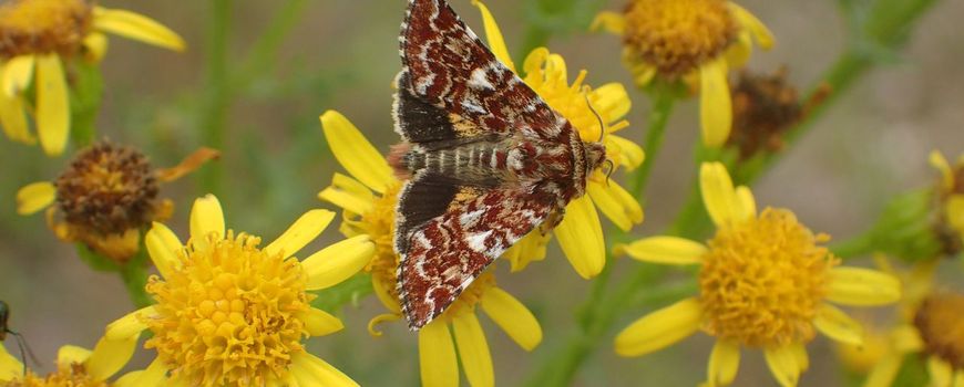 Beeld: Stef van Walsum (leadfoto: roodbont heide-uiltje op Jakobskruiskruid); Esther Hegt; Leonie Tijsma