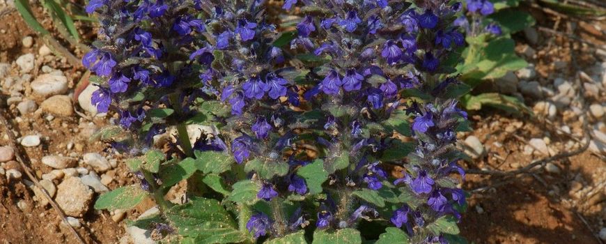 Nature TodayKruipend zenegroen bloeit van april tot juni. De blauwe bloemen vallen op in vochtige gebieden en ook langs de rand van de vijver doen ze het goed. De planten maken lange bovengrondse uitlopers. Deze kruipen over de grond en zo breidt de plant zich uit. Je ziet dan ook vaak groepjes bloemen bij elkaar staan die vanuit de uitlopers omhoog groeien. De bloemen lijken rondom de stengel te staan, maar als je goed kijkt zie je dat ze aan weerskanten van de stengel staan. Dit noemen we een schijnkrans. Zo’n schijnkrans is kenmerkend voor alle soorten uit de lipbloemenfamilie, zoals bijvoorbeeld ook hondsdraf en dovenetel.