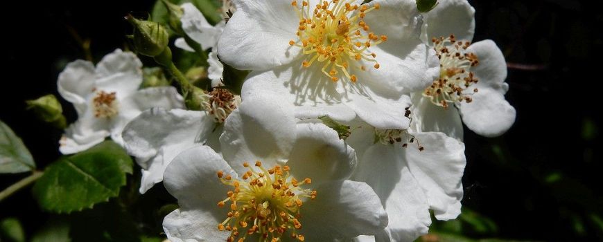 Nature TodayDe veelbloemige roos, ook wel trosroos genoemd, kom je regelmatig tegen in parken en tuinen. Tijdens de bloei vallen ze op door hun grote, witte bloemtrossen die heerlijk geuren. Een goed kenmerk naast de tros met veel bloemen, is het uiterlijk van de steunblaadjes onder aan de bladsteel. Die hebben een franjeachtig ingesneden rand. De bloemen worden veel bezocht door allerlei insecten, waaronder hommels. Soms zitten er tot wel 25 bloemen in een tros. Veelbloemige rozen worden ook wel gekruist met andere rozen, maar aan de ingesneden rand van de steunblaadjes kan je altijd zien dat ze afstammen van de veelbloemige roos.