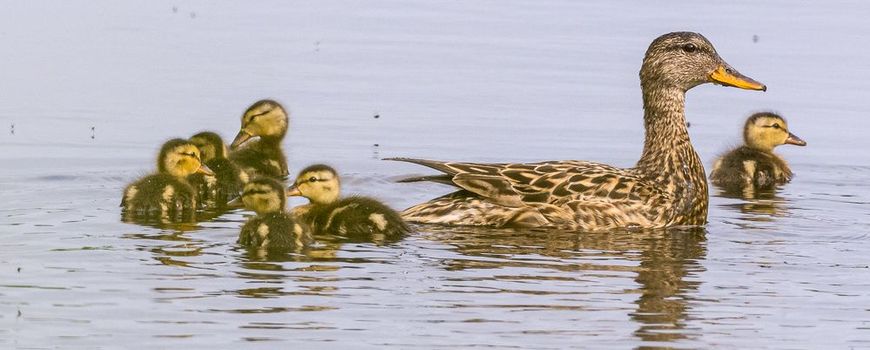 Nature TodayDe broedtijd van de krakeend is al een tijdje geleden begonnen en de eerste jongen zijn nu uit het ei. Het vrouwtje bouwt een nest van gras en dons op een beschutte plek op de grond, meestal langs een meer of kanaal. In dat nest legt ze acht tot twaalf eieren, die na ruim drie weken uitkomen. De jongen verlaten dan vrijwel direct het nest en volgen hun moeder. Het mannetje speelt geen rol in de zorg. Wel dankt de krakeend zijn naam aan het mannetje: hij maakt een zacht, nasaal krèk-krèk-geluid. Het vrouwtje maakt een geluid dat lijkt op het snateren van een wilde eend, maar zachter en minder uitgesproken. Ook in uiterlijk lijkt het vrouwtje krakeend heel erg op de wilde eend. Je herkent een vrouwtje krakeend aan de witte spiegel, de vlek aan de zijkant van de vleugel, dicht bij de staart. Deze spiegel is bij de wilde eend donkerblauw. Ook de witte buik en de oranje snavel onderscheiden de krakeend van de wilde eend.