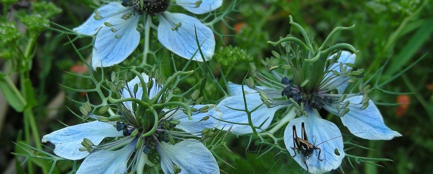 Nature TodayJuffertje-in-het-groen is een populaire tuinplant. Oorspronkelijk komt hij voor op de Canarische eilanden en in landen rond de Middellandse Zee. De naam juffertje-in-het-groen is een omschrijving van de bloeiwijze, een bloem (het juffertje) omringd door groen, fijn, kantachtig blad. Juffertje-in-het-groen hoort bij de ranonkelfamilie, maar heeft geen kroonbladachtige honingbladen, zoals bij veel andere boterbloemachtigen. Wel heeft de plant ’knobbels’, die afwisselend staan met de kelkbladachtige bloemdekbladen. In deze wel heel bijzonder gevormde 'honingbakjes' wordt veel nectar geproduceerd. Dat trekt bestuivende insecten aan, zoals vlinders, bijen en zweefvliegen.