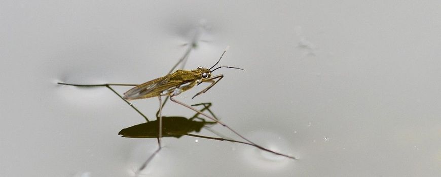 Nature TodaySchaatsenrijders leven in sloot, poel en plas en het is genieten van hun capriolen. Van een afstandje lijkt het of schaatsenrijders vier poten hebben in plaats van zes – zoals het een insect betaamt – maar het voorste paar houden ze gevouwen voor zich. De ellenlange midden- en achterpoten gebruiken ze om razendsnel vooruit te komen. Hun waterafstotende poten en de lage, gelijkmatige verdeling van hun lichaamsgewicht voorkomen – gecombineerd met de oppervlaktespanning van water – dat ze kopje-onder gaan. Het is of ze over een dunne trampoline roeien. Overal waar ze een poot neerzetten drukken ze het watervlies in, maar niet genoeg om de aantrekkingskracht tussen de watermoleculen te verbreken. Die verbindingen zijn het krachtigst in schoon water. Zo zie je aan de aanwezigheid van schaatsenrijders meteen hoe het met de sloot gesteld is.