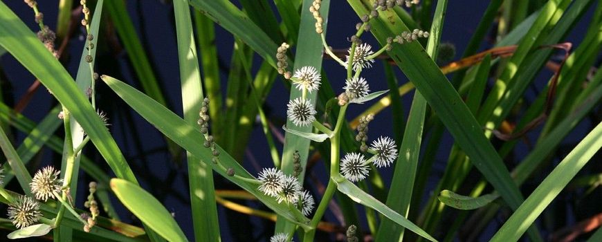 Nature TodayAls je deze zomer op het binnenlandse water te vinden bent, zie je misschien wel ergens langs de oever of in het water grote egelskop staan. Deze plant wordt ruim een meter hoog en heeft smalle, lange bladeren, die in een mooie waaier groeien. Boven aan stevige stengels zitten de opvallende bloemen. Aan elke zijtak van de stengel zitten onderaan een paar vrouwelijke bloemen, met uitstekende witte stempels. Daarboven zitten de bolletjes van de mannelijke bloeiwijze, die bedekt zijn met kleine vuilwitte bloemetjes en heel veel meeldraden. Zodra de vrouwelijke bloemen vrucht zetten, zien ze er pas echt uit als egeltjes. De bolletjes krijgen dan allemaal zwarte stekels.
