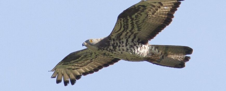 Nature TodayWaar wespen, bijen en hommels zijn, daar is ook de wespendief. Wespendieven volgen de sociale insecten naar hun grondnesten, alwaar ze zich te goed doen aan de inhoud. Terwijl zij de vette, voedzame larven stelen, worden ze natuurlijk veelvuldig gestoken door de bewoners van het nest. Zowel de taaie, overlappende schubben op hun poten als de stevige, dicht op elkaar liggende veren op hun kop beschermen ze tegen de wespenwraak. Vooral vanaf half juli tot ver in augustus heb je in ons land kans om wespendieven over te zien vliegen. Ze zijn op doortrek naar tropisch Afrika. Misschien hoor je er al een, voordat je hem ziet. Het is een wat klaaglijk gefluit.