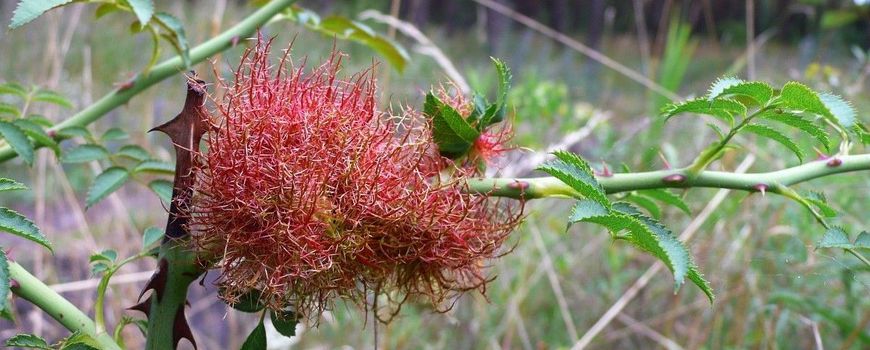 Nature TodayDe rozenmosgalwesp behoort tot de familie van de echte galwespen. Galwespen zorgen bij planten voor woekeringen. Hieruit ontstaan gallen waarin de larven zich kunnen ontwikkelen. Dat gebeurt doordat, na het uitkomen van de eieren, de larven stoffen uitscheiden die de plant aanzetten tot galvorming. Als de larve eerder sterft, stopt ook de galvorming. De gal zorgt voor voeding voor en bescherming van de larve. De rozenmosgalwesp legt haar eitjes op, meestal wilde, rozenstruiken (geslacht Rosa), zoals de hondsroos. Ze hebben een voorkeur voor zwakke waardplanten die een tekort aan water hebben, mogelijk zodat de planten minder goed kunnen terugvechten tegen de galontwikkeling. De gallen zijn bolvormig en bedekt met lange, vertakte haren. Ze zitten meestal aan het uiteinde van een tak en worden dan het grootst, met een doorsnede tot wel 6 centimeter, maar ze kunnen ook op bladeren, kelk- en kroonbladeren, meeldraden, en rozenbottels ontstaan. De gallen zijn dan kleiner, vanaf enkele millimeters. De gal bevat enkele tientallen kamers met in elke kamer een larve die er overwintert en verpopt tot een galwesp. Deze kruipt in mei of juni naar buiten om zelf eitjes te leggen, waarna opnieuw een gal gevormd wordt.