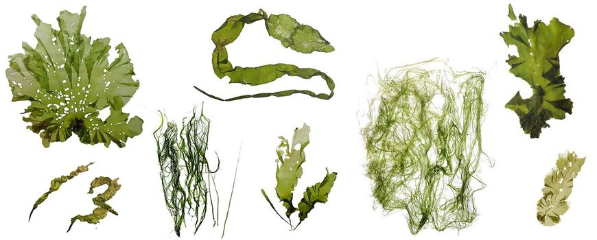 Beeld: Luna van der Loos (leadfoto: acht verschillende Ulva-soorten. Bovenste rij van links naar rechts: Ulva australis, Ulva compressa en Ulva fenestrata. Onderste rij: Ulva intestinalis, Ulva flexuosa, Ulva linza, Ulva pilifera en Ulva sp. 11); Naturalis Biodiversity Center