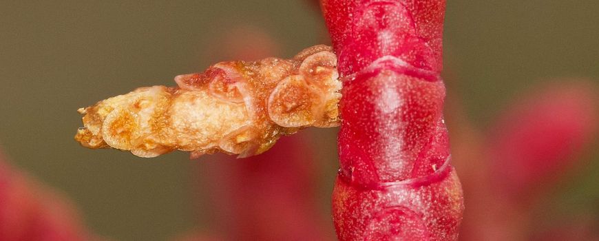 De zeekraalkokermot (Coleophora salicorniae) is met zijn opvallende levenswijze met recht een verbazingwekkende soort te noemen. Zoals de naam doet vermoeden is de waardplant zeekraal, een plant die veel in kustgebieden en op kwelders te vinden is, en geregeld wordt blootgesteld aan de getijdeschommelingen tussen eb en vloed. Dit betekent dat de zeekraalkokermot ook met die dynamiek moet ‘dealen’ en af en toe ‘kopje onder’ gaat in het zoute water. Gedurende een aantal weken per jaar zijn de kokers van de zeekraalkokermot te vinden op de plant. De rups leeft eerst in een van de zeekraalaren, en zodra deze volledig is uitgehold, wordt deze afgebeten en gebruikt als ‘koker’. De kokers zijn te vinden door te letten op kleine stompjes die vaak bruin afsteken en haaks op een aar of stengel van zeekraal staan. De soort is met gericht zoeken goed te vinden op plekken waar veel zeekraal bij elkaar staat.