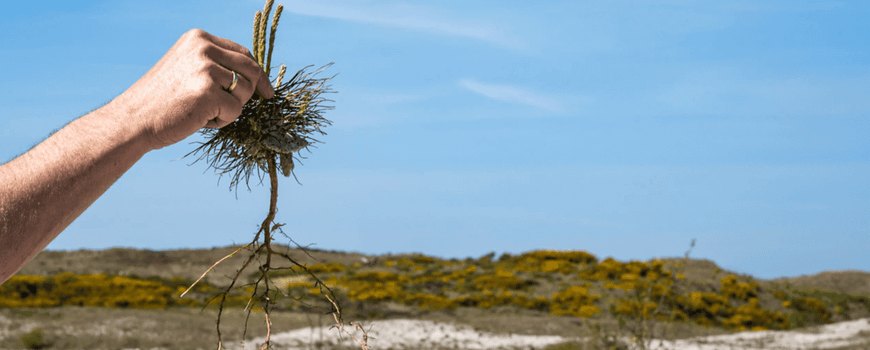 De duinen in Nederland hebben het moeilijk. Omdat verstuiving als bedreiging werd gezien voor dorpen en steden, is de afgelopen eeuwen op veel plekken langs de kust helmgras en bos aangeplant. Martijn: “Doordat het verstuiven afnam en er meer stikstof in het gebied neersloeg, werd de bodem te zuur en te voedselrijk en groeiden de duinen steeds verder dicht met gras, struiken en bomen. Het gevolg is dat we steeds minder van die typische zanderige stukken en graslanden zagen. En dat we steeds meer van de variatie aan planten en dieren verloren.”