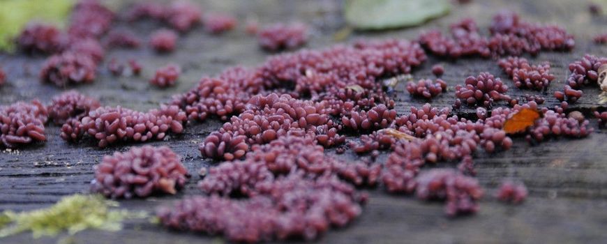 Nature TodayEen bundeltje paarse knoopzwammen is een kleurige ontdekking op dood hout. Zeker nu steekt het roze, lila en violet af tegen de vele aardse tinten van het najaar. In het veld is de paarse knoopzwam niet van de grootsporige paarse knoopzwam te onderscheiden, dat kan alleen door ze onder de microscoop te bestuderen. Er spelen dus twee zwamsoorten onder één hoedje. De vruchtlichamen van paarse knoopzwammen zien er niet altijd als knoopjes uit. Soms zie je groepje bolletjes of kussentjes, dan weer een hersenachtig gezelschap. Pas als de vruchtlichamen sporen gaan aanmaken, platten paarse knoopzwammen af tot schijfjes en doen ze hun naam eer aan. Ze zijn dan in hun 'perfecte stadium', perfect in vorm dus.
