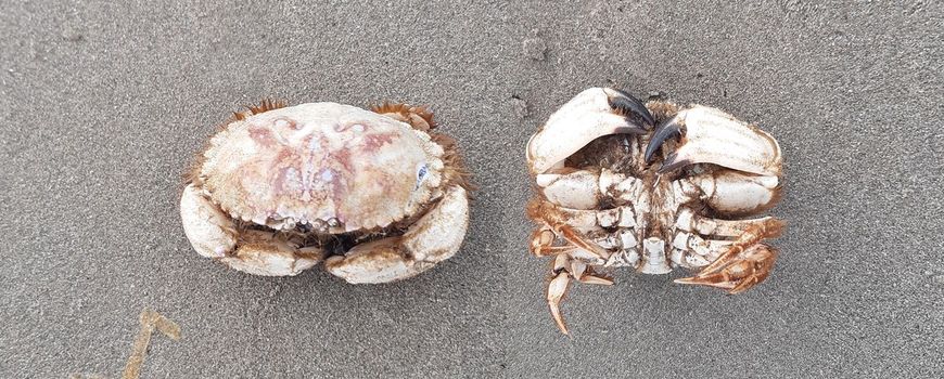 Wie enkele dagen na storm Amy vanuit Wijk aan Zee-Velsen Noord over de Reyndersweg naar 'het einde' rijdt, ruikt al op de parkeerplaats een enorme, stinkende rotte vislucht. Eenmaal op het strand is duidelijk waar die vandaan komt: een dik pak aanspoelsel met honderdduizenden dode zeesterren. Ook diverse media kregen er lucht van. Hier bij de Noordpier is Tata Steel vlakbij, maar ruiken doe je die niet meer. Verderop komt een zeehond uit de branding, de mensen laten die met rust, zoals het hoort. Behalve zeesterren had Amy nog extreem veel meer aangevoerd. Dode platvissen, scheermessen, otterschelpen, strandschelpen en heel veel andere schelpdieren en organismen. Er liggen ook krabben en resten daarvan. Daartussen een krab die je pakweg tien jaar geleden niet op onze stranden zag. Een nieuwkomer met een nogal lange en ingewikkelde wetenschappelijke naam: Atelecyclus undecimdentatus. De Nederlandse naam is Ovaalronde krab.