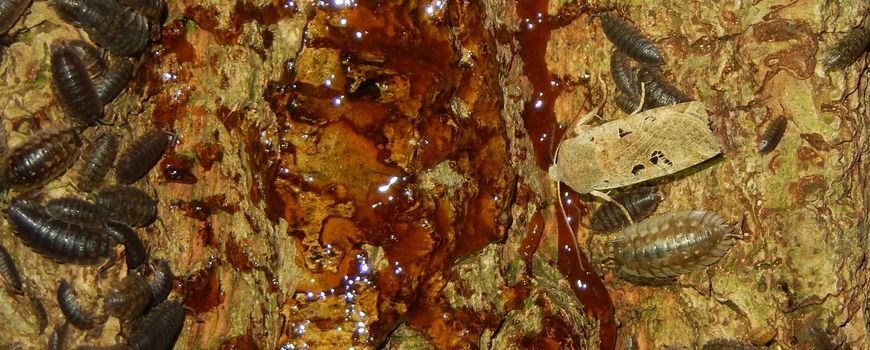 Er zijn nachtvlinders – vooral van de familie van de uilen – die je ook in januari kunt vinden, maar deze moet je wel lokken. Door te stropen of smeren kun je ze te zien krijgen. Stropen houdt in dat je rond zonsondergang een zoete stof in kleine plekjes op bomen aanbrengt. Vanaf een uur na zonsondergang kun je die plekken voorzichtig controleren met een zaklamp en dan kun je daar nu, half januari, een soort of vijf op aantreffen. Het is vooral belangrijk dat het smeer zoet is – dus veel suiker is een vereiste – maar over de precieze ingrediënten heeft iedere vlinderaar haar of zijn eigen ideeën. De een zweert bij overrijpe bananen, er zijn er die absoluut appelmoes erin willen hebben en een ander staat erop dat er flink wat alcohol wordt toegevoegd. Ook met een heel simpel recept, rode wijn met suiker, kun je al succes hebben. Deze vloeibare massa kun je met een plantenspuit eenvoudig aanbrengen op de bomen. Ikzelf werk altijd met het recept dat je op de site van De Vlinderstichting kunt vinden en daarmee heb ik regelmatig groot succes.