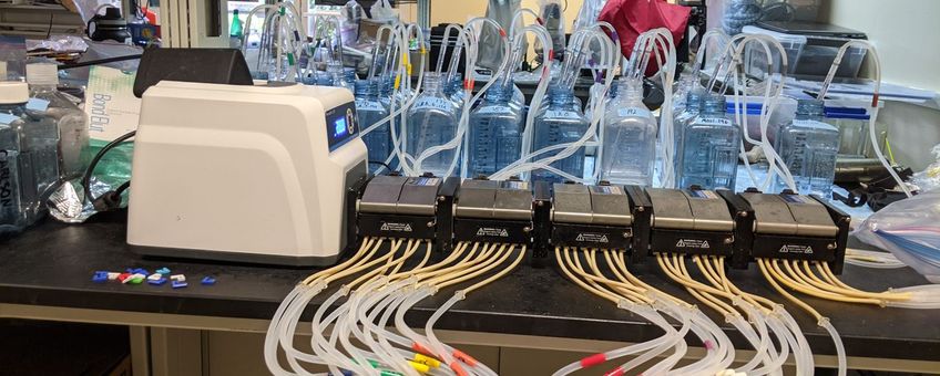 Beeld: NIOZ (leadfoto: filtratie-opstelling in Mo'orea, die is gebruikt voor analyse van zeewatermonsters)