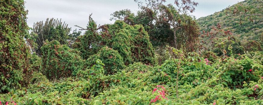 Dutch Caribbean Nature Alliance (DCNA), STENAPA, Technische Universität Braunschweig, University of Zurich, Utrecht University, Wageningen University & ResearchCoralita (Antigonon leptopus) is a fast-growing, climbing vine with beautiful pink or white flowers. Originally from Mexico, it started out as a popular garden plant, but has expanded its territory and is now aggressively invading natural areas. Its fast-growing nature means that it can outcompete most native species for terrain, quickly making it the dominant species, and reducing overall diversity. This is especially the case on St. Eustatius, where ground surveys indicate that the plant already appears on 15 to 33 percent of the island.