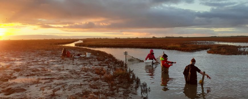 Photos: Swimway Wadden Sea (lead photo: researcher Hannah Charan-Dixon with her team at work in the salt marshes); Wadden Mosaic