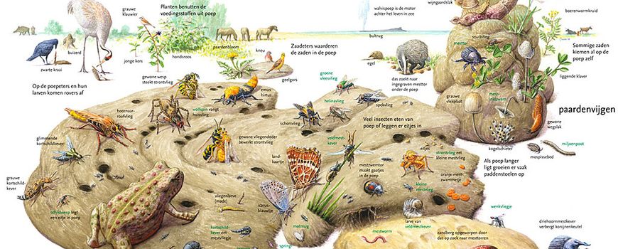 Recent onderzoek van ARK laat zien dat poep van grazers niet altijd zo rijk is aan insecten. Regelmatig worden koeien en paarden behandeld met ontwormingsmiddelen, om besmettingen met parasieten tegen te gaan. Hierdoor sterft de mestfauna en kunnen soorten als de kraanvogel, maar ook andere vogelsoorten, amfibieën en zoogdieren zich niet meer tegoed doen aan de vele insecten die normaliter op een verse vlaai of flats afkomen. Met haar project ‘Poep moet leven’ roept ARK beheerders op om erg terughoudend te zijn met het gebruik van deze anti-parasitaire middelen, zodat ze niet in natuurgebieden terecht komen.