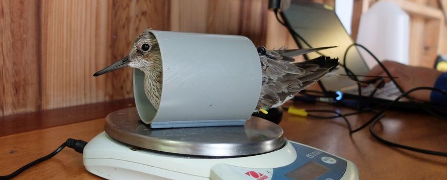 Lameris heeft de kanoeten die ‘meedoen’ aan het onderzoek afgelopen winter gevangen op Griend, een zandplaat in de Waddenzee. Ze zijn in drie groepen verdeeld, die elk een situatie nagebootst kregen met een grotere of kleinere voedselbeschikbaarheid. Daarvoor werd de tijd die ze konden eten verlengd of beperkt. Lameris legt uit hoe dat werkte: “De eerste groep kon 24 uur per dag eten. Veel meer dan in het wild, waar ze alleen bij laag water kunnen foerageren. De tweede groep kon 12 uur per dag eten. Dat lijkt meer op de natuurlijke situatie waarin er twee keer per dag zo’n zes uur lang laag water is. De derde groep kreeg zes uur per dag te eten, dus zij hadden een kortere tijd om te eten dan in een natuurlijke situatie.”